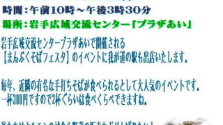 沼宮内駅隣接「プラザあい」開催のそばフェスタに出店します!!