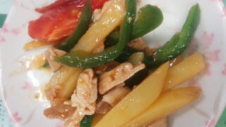 市販のチンジャオロースのソースでからめただけ!の簡単レシピ。