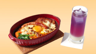 奥州ハーブ鶏のカチャトーラと岩手町産ソーセージの焼きカレーセット 1日限定15食 ご飯大盛無料 トマトベースで煮込んだ奥州ハーブ鶏の焼きカレー。 ゆうやけピコは石神の丘のゆうやけをイメージしたバタフライピーティーとカルピスを使用したドリンクです。 2022.08.02